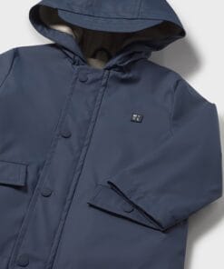 Bunda chlapecká Mayoral. Dětská bundo pláštěnka s dlouhým rukávem. Kapuce s kšiltem. Zapínání na zip a knoflíky. Měkká polyesterová podšívka. Funkční přední kapsy.