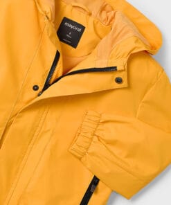 Chlapecká bunda Mayoral oranžová s kapucou, delší, příjemný materiál, zapínání na zip, funkční uzavíratelní kapsy, rukáv do gumy, 100% polyester, podšívka 72% polyester, 28% bavlna