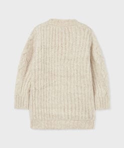 Dlouhý pletený svetřík s knoflíkama. 66% akryl, 34% polyester