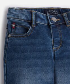 Modré tmavé džíny, utahovatelný pas, 76% bvalna, 23% polyester, 1% elastan.