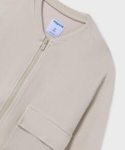 Dívčí bunda Mayoral na zip s kapsami na předním díle, velmi příjemný materiál. Barva písková. 49% viskoza, 44% polyester, 7% elastan