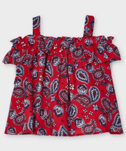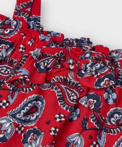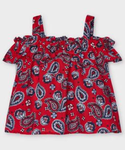 Dívčí halenka poppy Mayoral. Halenka na ramínka s otvory pro ruce – variabilní v nošení, potisk, jemný materiál, 77% viskoza, 23% polyamid.