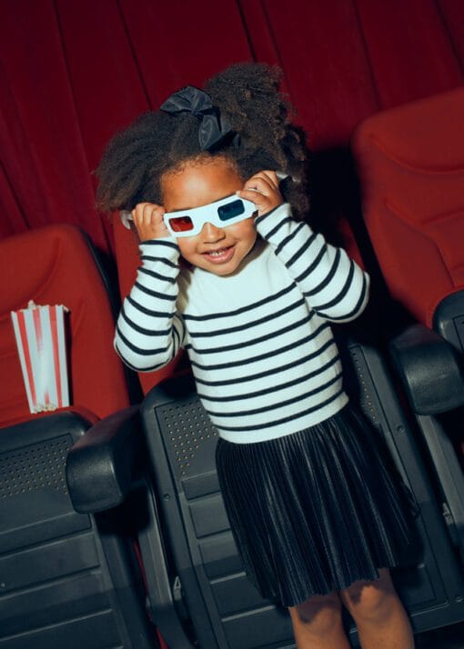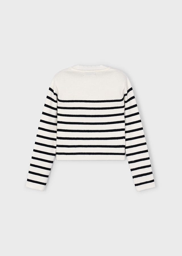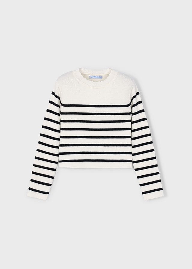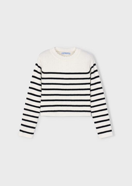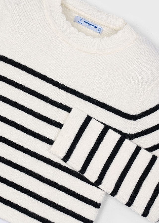 Dívčí svetr Mayoral. Pruhovaný svetřík s lemováním výstřihu. Jemná a měkká pletenina, příjemná na dotek.