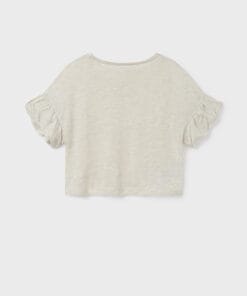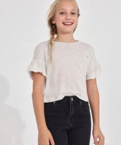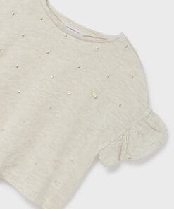 Dívčí tričko Mayoral. Krátké tričko s aplikací cvočků a nařasené rukávy, 95% viskoza, 4% polyester, 1% kovové vlákno