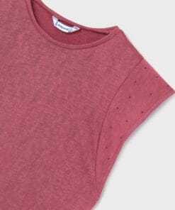 Krátké tričko splívavý, příjemný materiál, kamínky ve volánkových rukávech, 55% pviskoza, 45% polyester