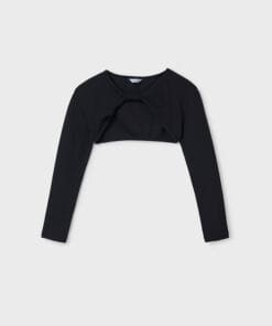Dívčí černý žebrovaný top s kardiganem Mayoral, celý set, 95% bavlna, 5% elastan