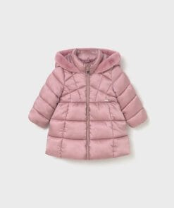 Dívčí zimní bunda Mayoral. Nádherná dívčí zimní bunda/kabát, vyrobena ze 100% recyklovatelného polyesteru, vnitřní jemný kožíšek, zapínání na zip, kapsy. Kapuce lemovaná kožíškem z umělé kožešiny. Zapínání na zip vpředu uprostřed. Měkká polyesterová podšívka.