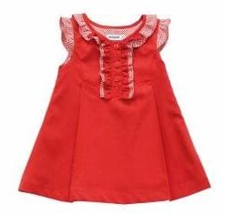 Lehounké červené šatičky Mayoral ozdobené kanýrkama. 67% polyester, 33% viskoza.