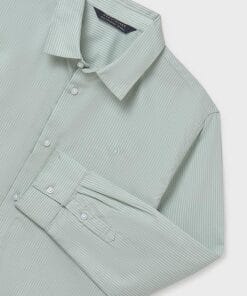 Košile chlapecká Mayoral s dlouhým rukávem a manžetami na knoflíky. Zapínání vpředu na knoflíky. Model z kolekce Mayoral Basic, který je nezbytný ve výbavě každého mladého pána.