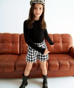 Kraťasy dívčí Abel Lula. Nádherné společenské kostkované kraťasy s jemnými flitry. Vpředu jsou dvě kapsy a zapínání je na zip vzadu. Můžete perfektně sladit s Abel Lula halenkou a bekovkou. V těchto kraťasech zazáříte při jakékoliv výjimečné situaci.