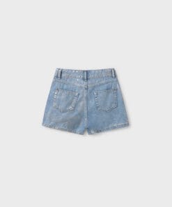 Kraťasy pro juniorskou kategorii. Nastavitelná guma s knoflíky na vnitřní straně pasu pro lepší padnutí. Vyrobeno z moderního denimu s efektem praní a obnošeným a postříbřeným vzhledem. Vysoký pas. Funkční kapsy na přední a zadní straně. 100% bavlna