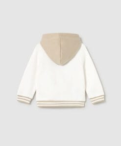 Mikina chlapecká s kapucí. Přední boční zapínání na knoflíčky. Elastický lem a manžety pro lepší nošení. Potisk na předním díle.