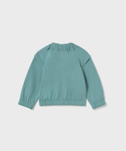 Dívčí mikina na zip Mayoral zajímavě řešená, dvojité nárameníky, řasení u krku a na kapsičkách, dvě kapsy, rukávy do gumy, 95% bavlna, 5% elastan.