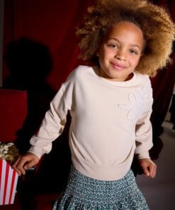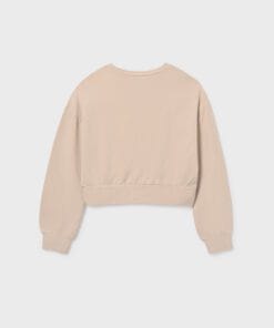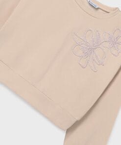 Mikina dívčí Mayoral s květinovou aplikací na předním díle.  V barvě pískové, která sladíte se spoustou dalších barev.