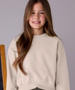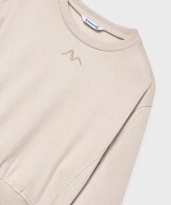 Dívčí mikina s dlouhým rukávem. Silueta s volnými liniemi a spuštěnými rameny. Elastický lem, manžety a límec pro lepší padnutí. Dekorativní prvky: výšivka.