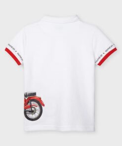 Polo s krátkým rukávem, ozdobným lemováním límečku a rukávů, aplikace na předním díle, 99% bavlna,1% elastan.