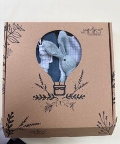 Sada dvou bambusových plenek, držáčku na dudlík a hračky v papírové dárkové krabičce. Jemná organická látka, šetrná a pečující. Vhodné jako dárek pro nejmenší miminka.