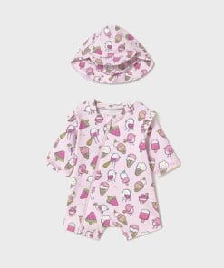 Sada plavek a čepice pro nejmenší s ochranou proti slunci, 85% polyester, 15% elastan, čepice 85% polyester, 15% elastan, podšívka 100% polyamid