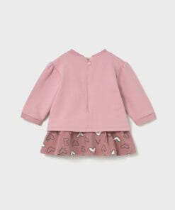 Šaty dívčí Mayoral. Šaty teplejší s dlouhým rukávem pro malé holčičky. Kulatý výstřih. Zapínání na zip na zadní straně pro rychlé oblékání. Dekorativní prvky: ozdobné aplikace, výšivka, potisk.