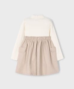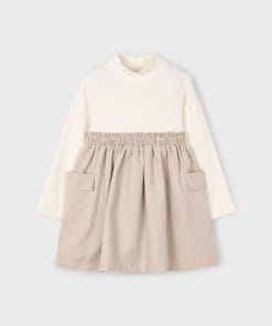 Šaty dívčí Mayoral kombinované. Dívčí šaty s dlouhým rukávem. Kulatý výstřih. Design s neodepínatelným tričkem. Elastický pas. Body a sukně z různých materiálů pro dosažení jedinečného a osobitého designu. Nařasený design. Boční kapsy.