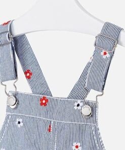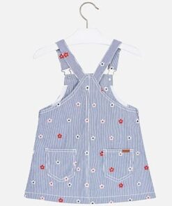 Denim šatičky Mayoral s laclem a potiskem jemných kytiček, utahovatelná ramínka, 100% bavlna