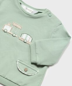 Set 2dílný chlapecký – tričko s aplikací na předním díle, kalhoty elastické v pase. Dodáváno v krabičce. Tričko 94% bavlna, 1% elastan, 1% len, kalhoty 95% bavlna, 5% elastan
