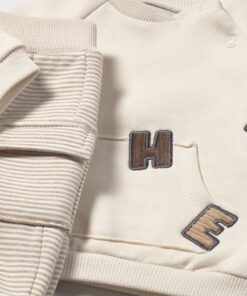 Čtyřdílná sada pro novorozence sestávající ze dvou kombinací svetrů/mikin a dlouhých kalhot. Zapínání na druky na ramenou pro snadné oblékání. Dekorativní prvky: ozdobná aplikace, výšivka. Kalhoty pro novorozence s maximálním pohodlím. Elastický lem pro lepší padnutí.