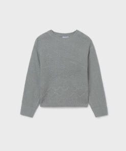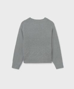 Svetr dívčí Mayoral. Dívčí pletený zelinkavý svetr s dlouhým rukávem. Kulatý výstřih. Kombinace různých látek pro dosažení jedinečného a osobitého designu. Boční otvory ve spodní části oděvu pro pohodlnější nošení. Dekorativní lesklý vzhled.