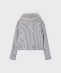Krásný pletený, jemný svetřík s odepínatelným kožíškovým límcem. 38% viskoza, 36% polyester, 25% polyamid, 1% elastan