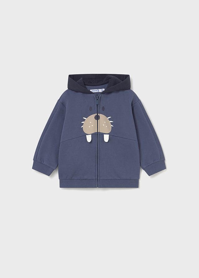 Tepláková souprava chlapecká Mayoral. Trojdílná teplákovka pro kluka, která se skládá z mikiny, tepláků a sladěného trička. Mikina s dlouhým rukávem a kapucí. Zapínání na zip vpředu uprostřed. Tričko s dlouhým rukávem. Zapínání na skryté cvočky pro snadné oblékání. Design zvířátek.
