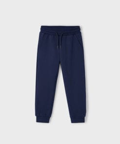 Tepláky chlapecké Mayoral basic, slabší, elastický pas, utahovatelná šňůrka. Dvě funkční přední kapsy  a jedna zadní kapsa. Barva modrá marino. 58% bavlna, 38% polyester, 4% elastan