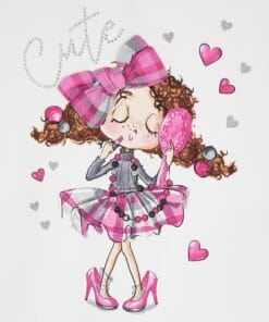 Tričko dívčí Mayoral Cute. Tričko se zajímavým potiskem a detaily (kamínky, mašlička, flitry), jemné kanýrkové lemování výstřihu, žabičkově stažené rukávky, vyrobeno z udržitelné bavlny, 92% bavlna, 8% Elastane.