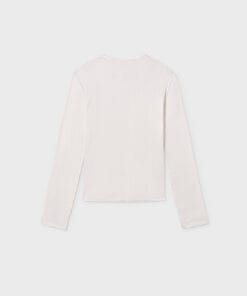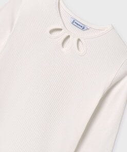Tričko dívčí Mayoral. Kulatý výstřih. Žebrovaný úplet. Kapkovité dekorativní průstřihy kolem výstřihu
