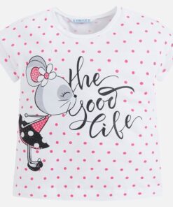 Tričko puntíkaté s krátkým rukávem a veselým potiskem, 95% bavlna, 5% elastan.