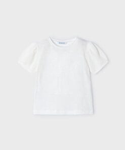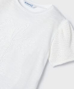 Tričko Mayoral dívčí s krátkým dírkovaným rukávem, výšivková aplikace na předním díle, 100% bavlna