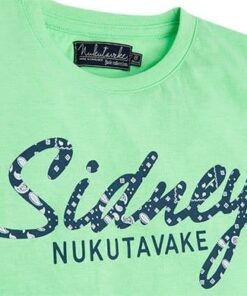 Tričko v jasné zelinkavé barvě s nápisem na předním díle 65% polyester, 35% bavlna